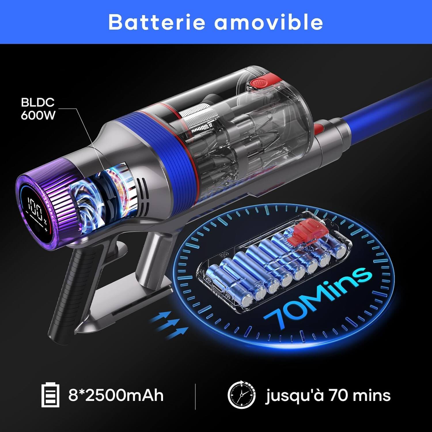 - Max 70 Minuten & 8*2500mAh Akku: S18 akku staubsauger ist mit 8 *2500-mAh-Hochkapazität ausgestattet und bietet maximal 70 Minuten Laufzeit im Ökosmodus, sodass Sie Ihr gesamtes Haus reinigen können. Die Batterien sind abnehmbar und können einzeln geladen werden. Sie können eine zweite abnehmbare Batterie kaufen, um Ihre Reinigungszeit zu verdoppeln.